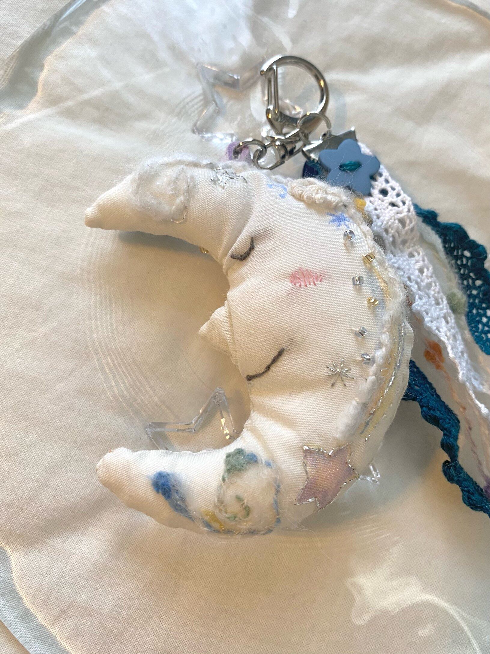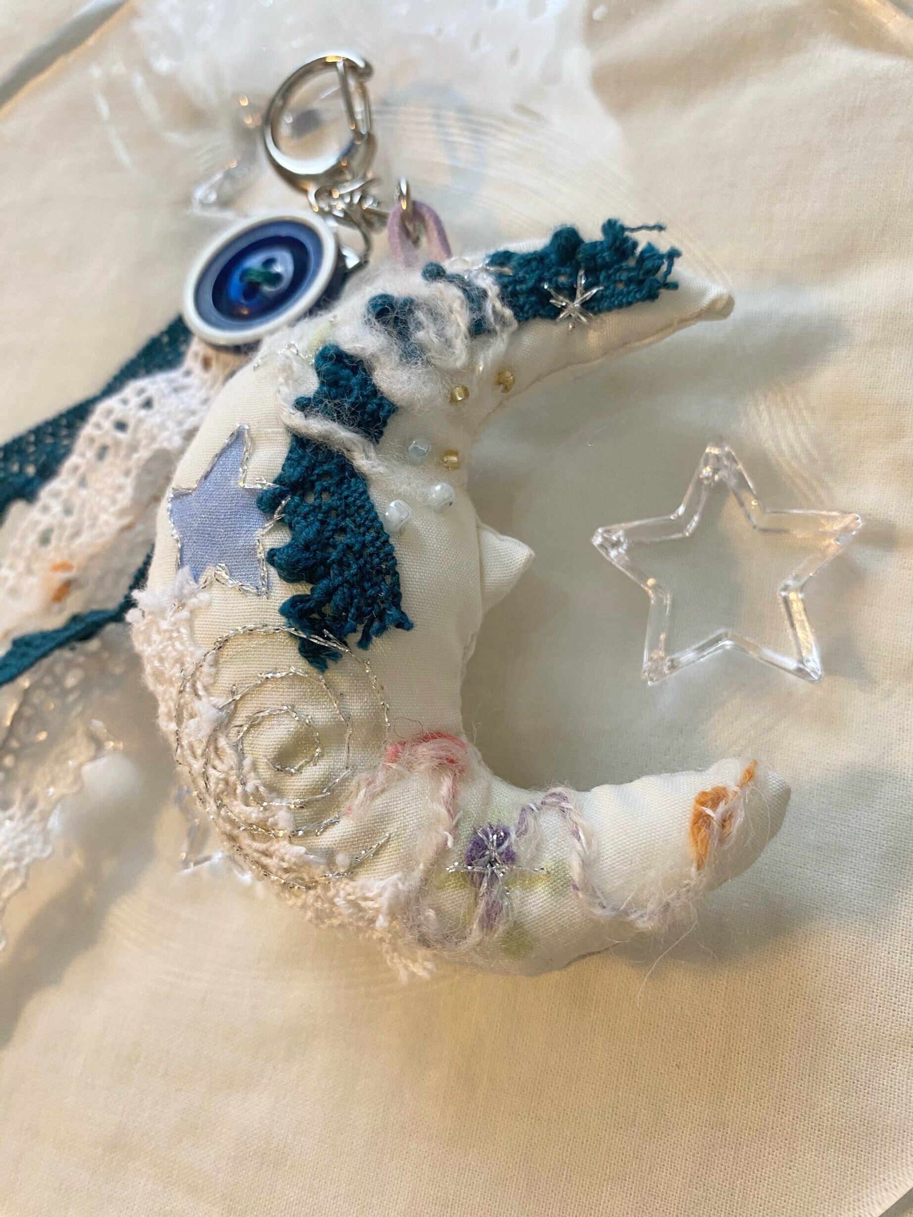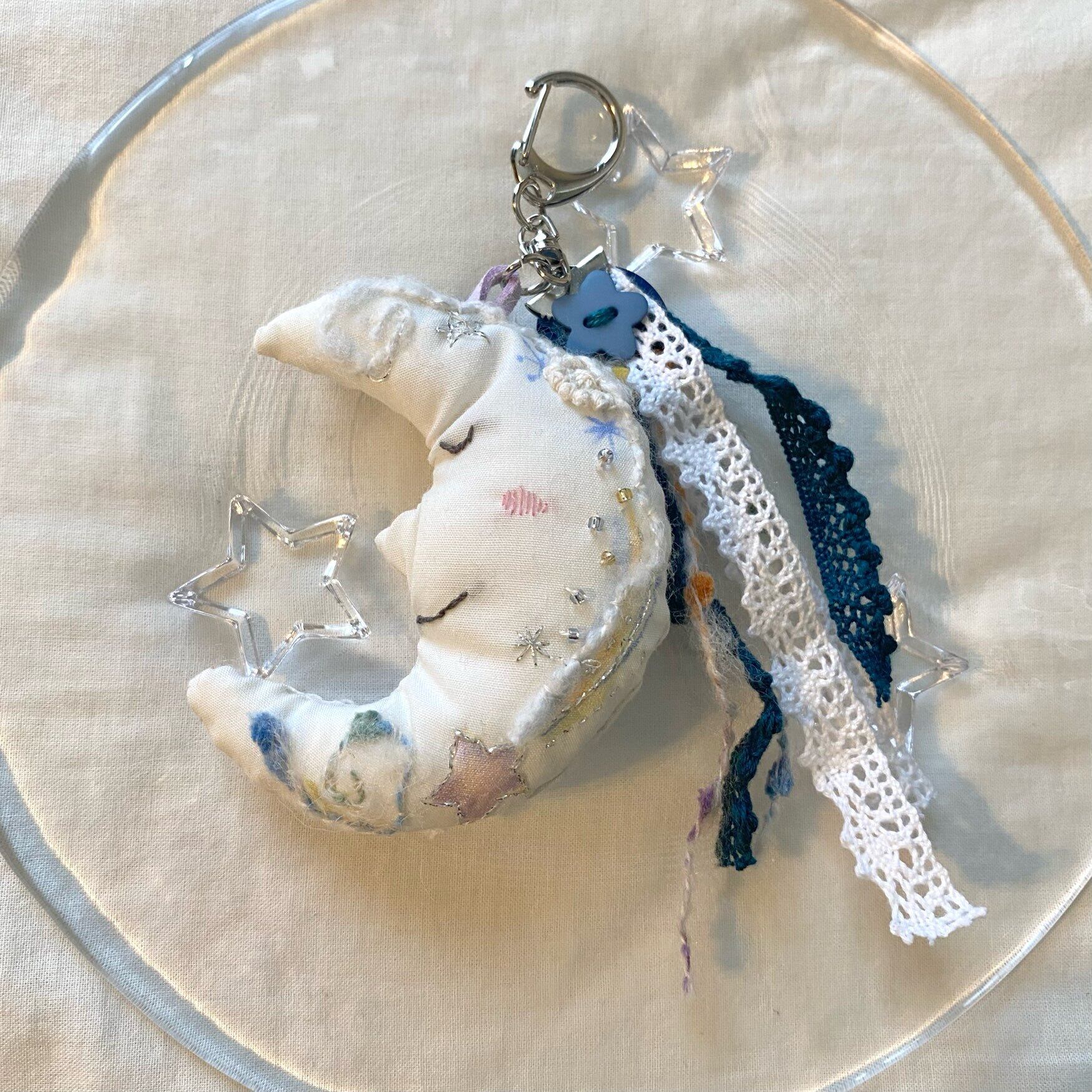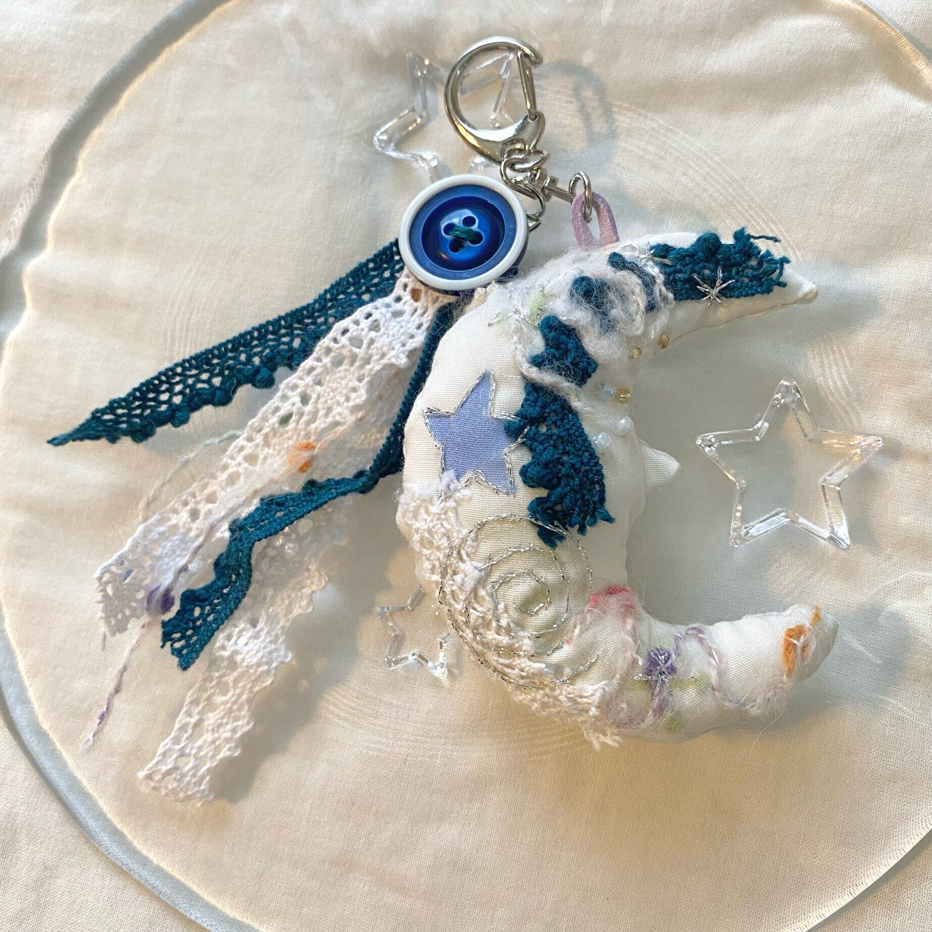 流れ星をイメージした、ふわふわのレースのチャーム付きです。