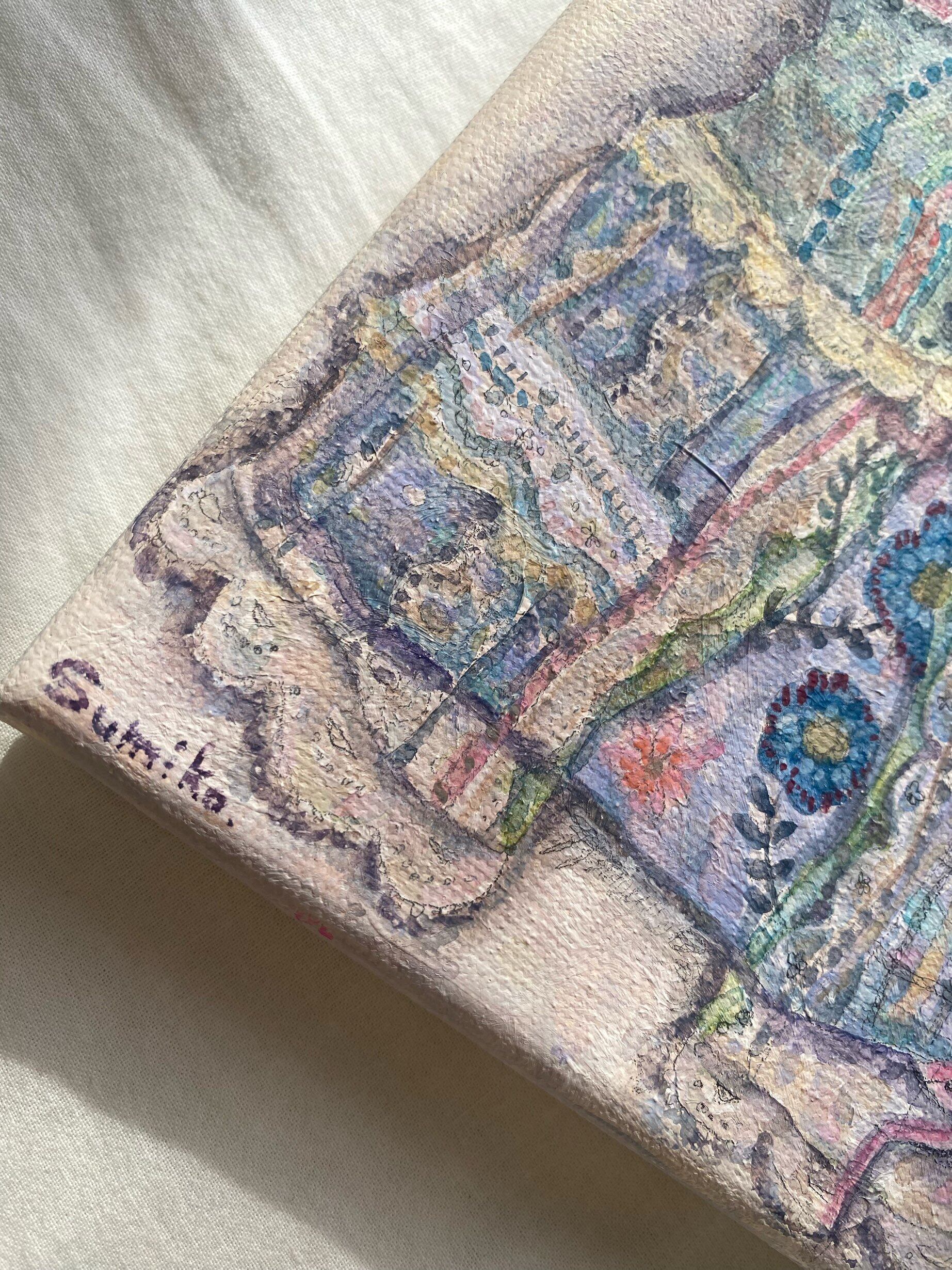 ・パネル作品なので、ピンなどに引っ掛けて、そのまま飾ることができます。