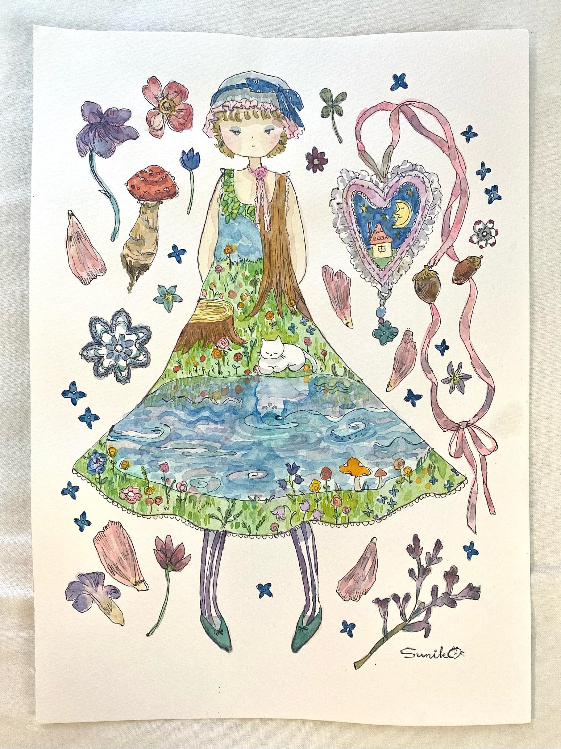 額装して飾っていただく他に、そのままピン等で飾っていただいても素敵だと思います・:*+.