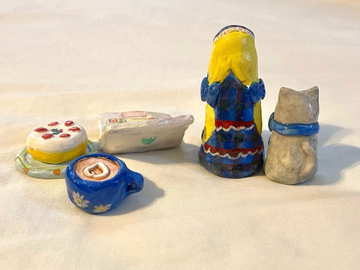 石粉粘土・水彩絵の具・艶出し耐水ニス