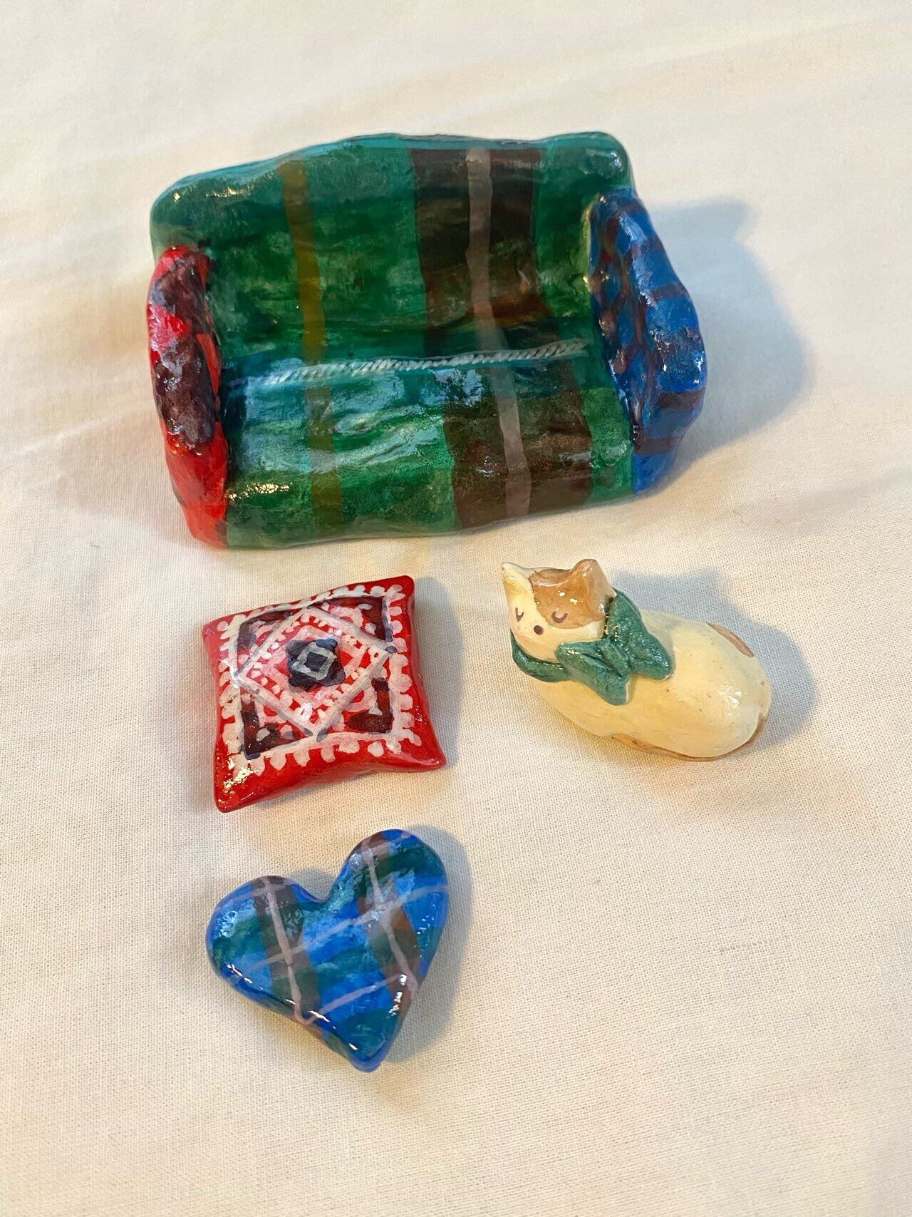 石粉粘土・水彩絵の具・艶出し耐水ニス