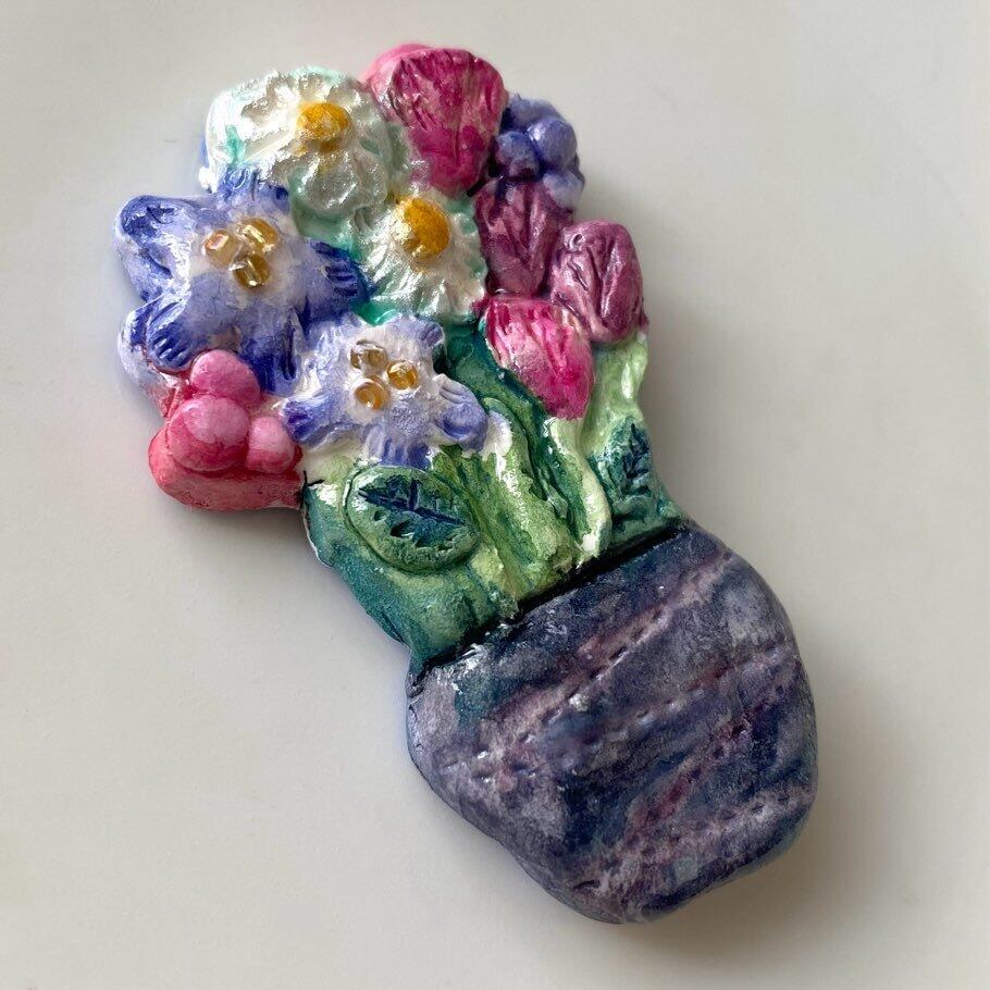 小さな花瓶のブローチ or マグネットです