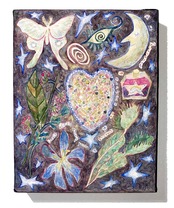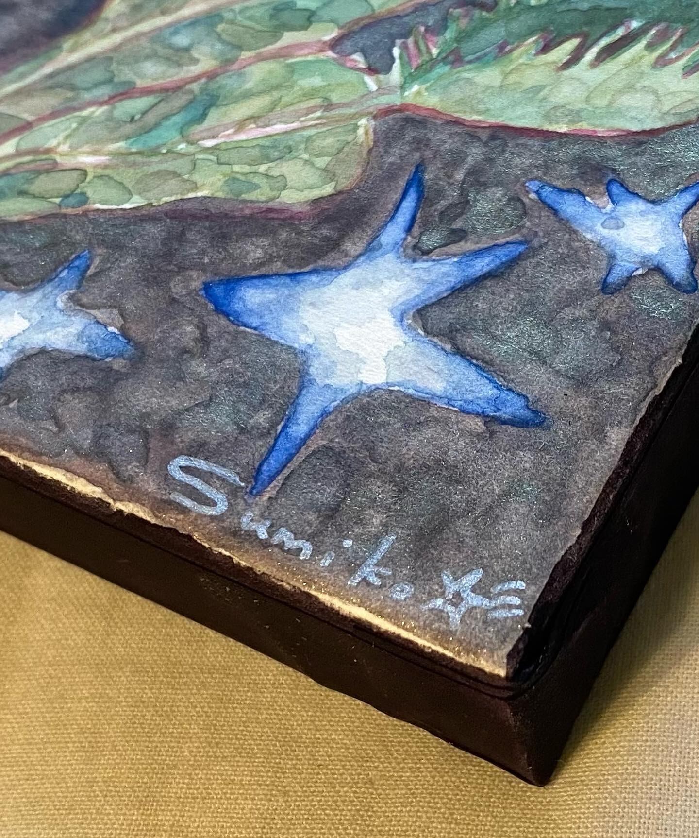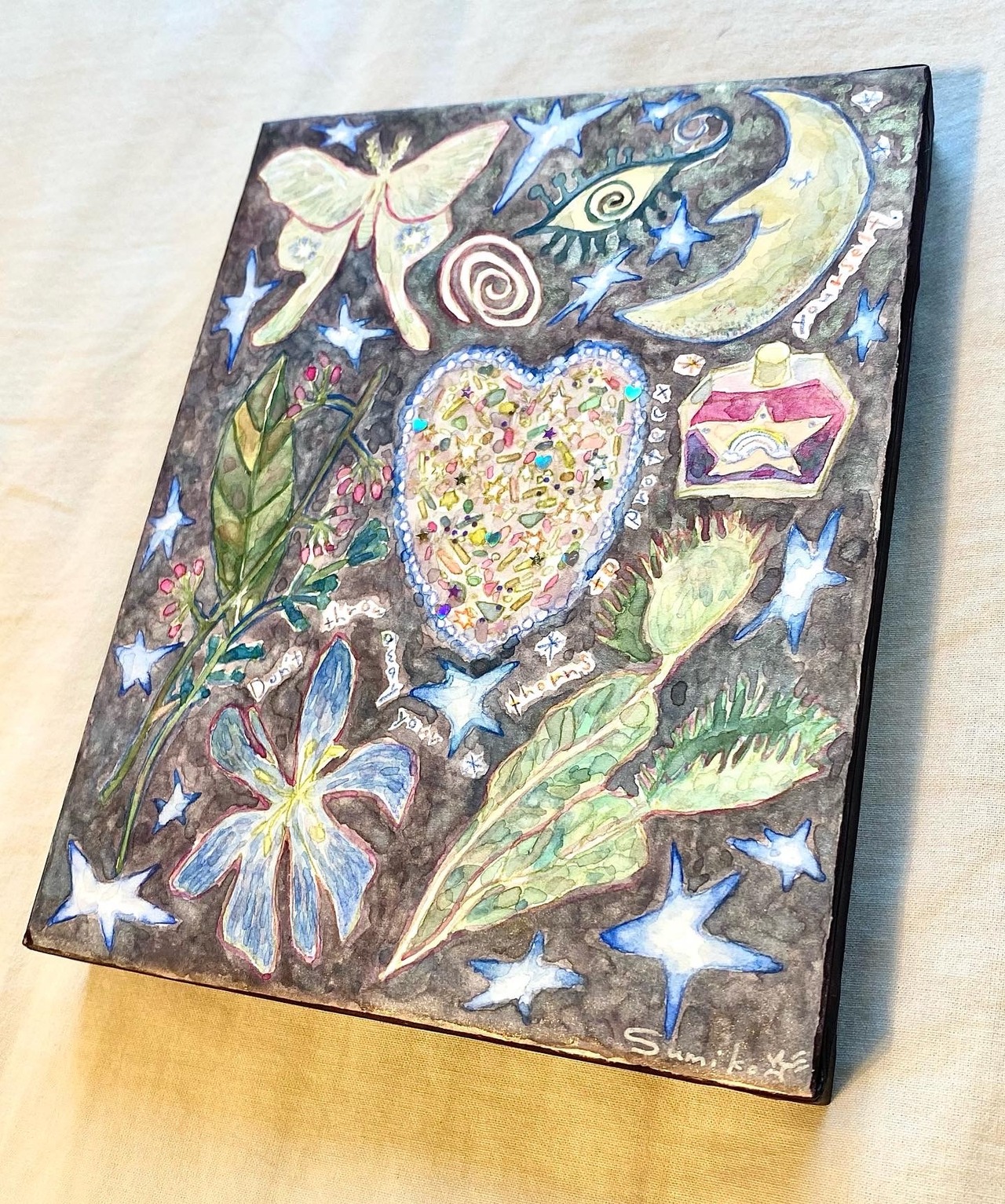 木製パネル・水彩絵の具・ボールペン
