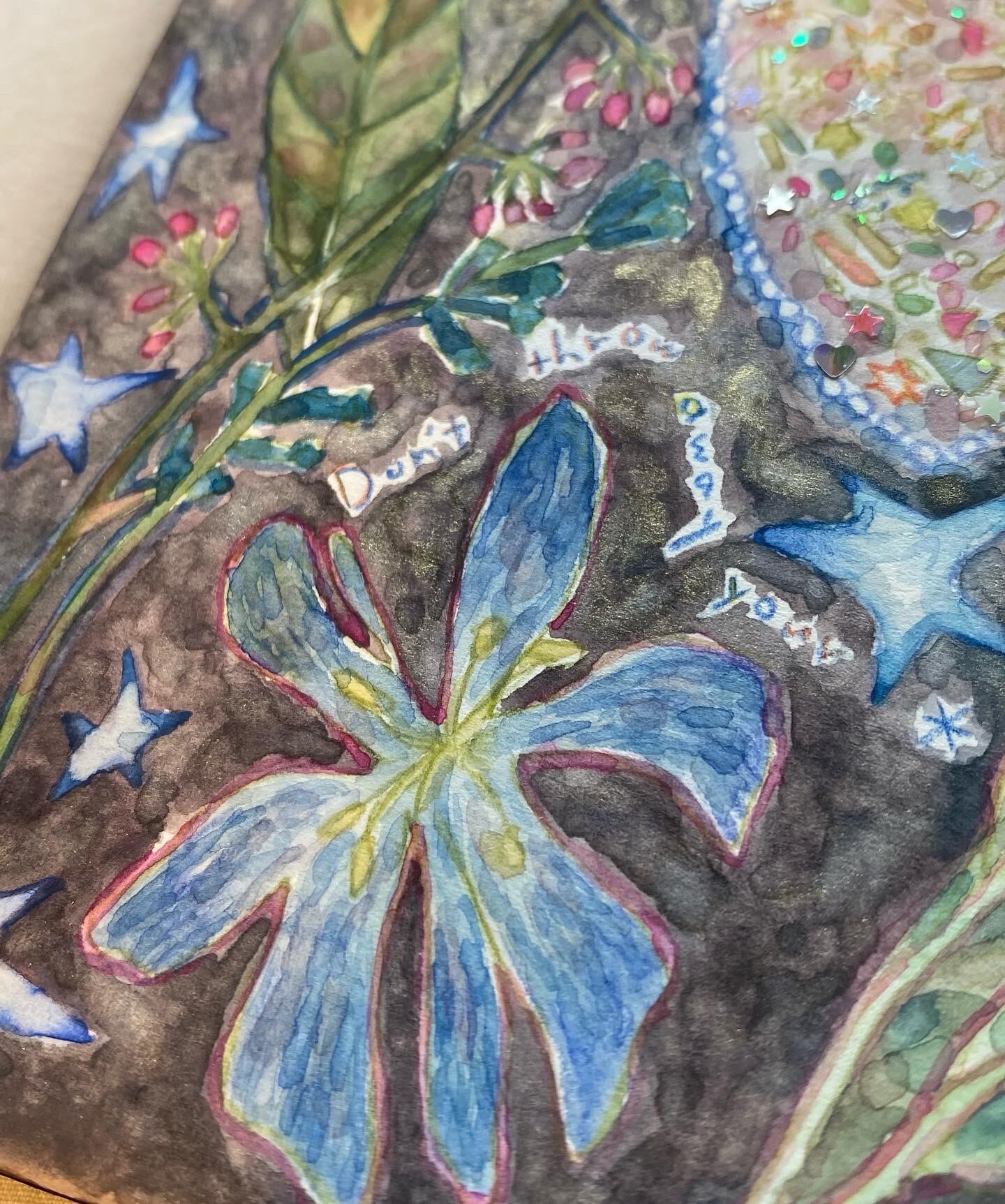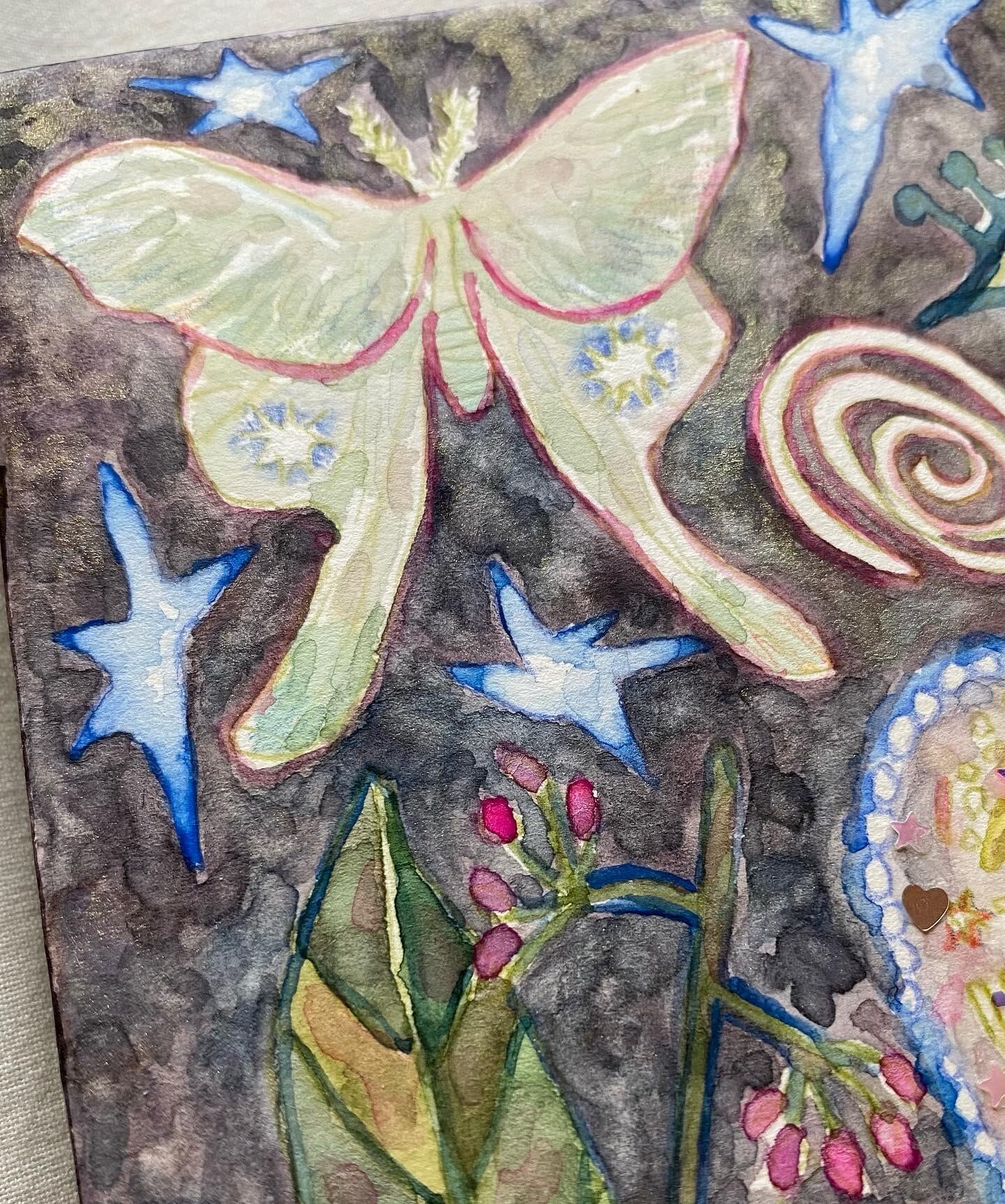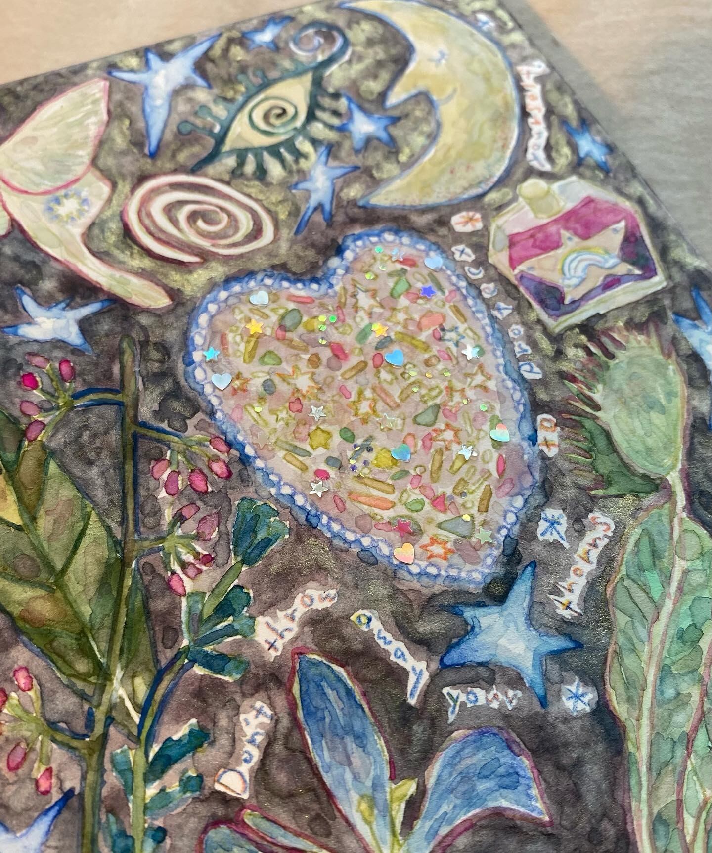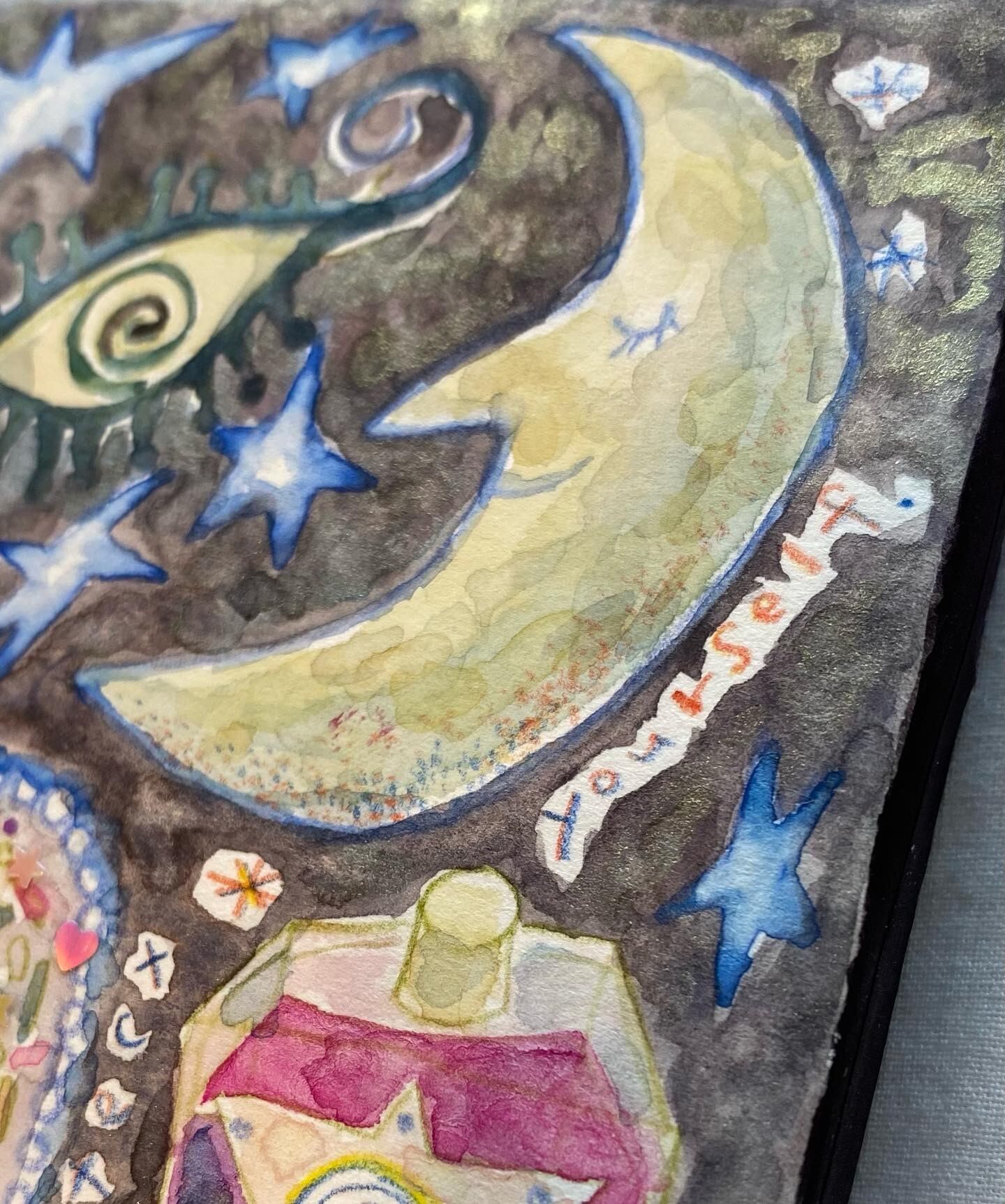 wood panel, paper, watercolor, ballpointpen